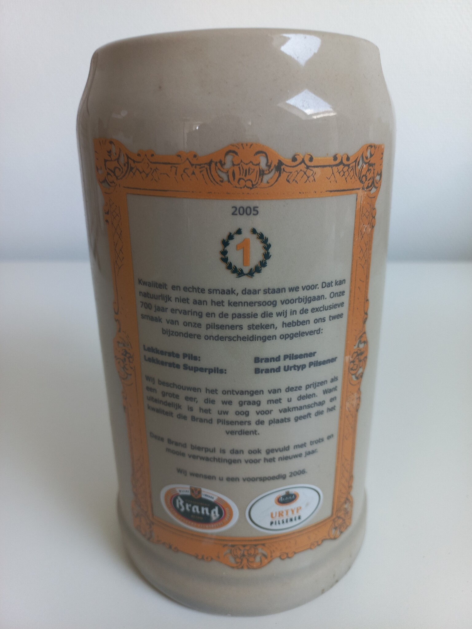 Dé 2005 Brand jaarpul. Elk jaar wordt er een speciale editie uitgebracht. Drink met nog veel meer plezier je Brand biertje, of zet deze pul bij je verzameling jaarpullen!