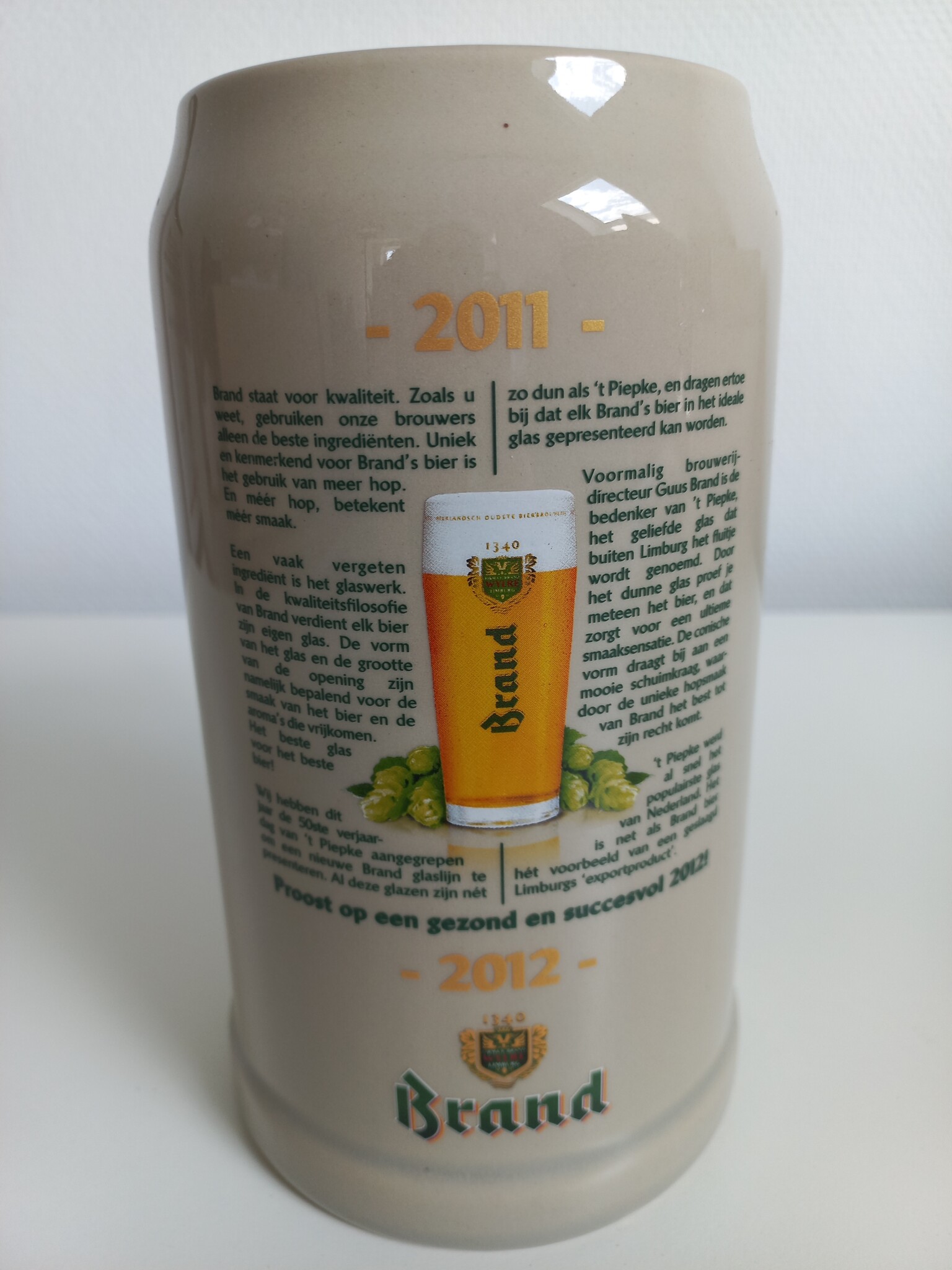 Dé 2011 Brand jaarpul. Elk jaar wordt er een speciale editie uitgebracht. Drink met nog veel meer plezier je Brand biertje, of zet deze pul bij je verzameling jaarpullen!