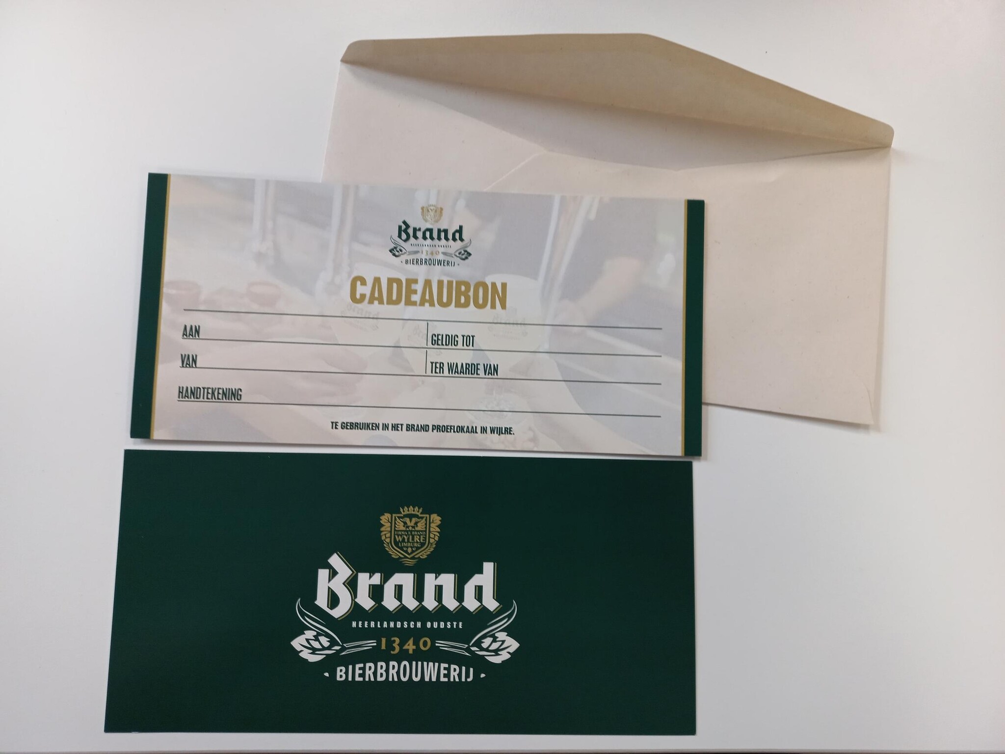 Met deze Cadeaubon, kan men genieten van heerlijke Brand biertjes en hapjes in het Proeflokaal, of iets leuks uitzoeken in de winkel in Wijlre.