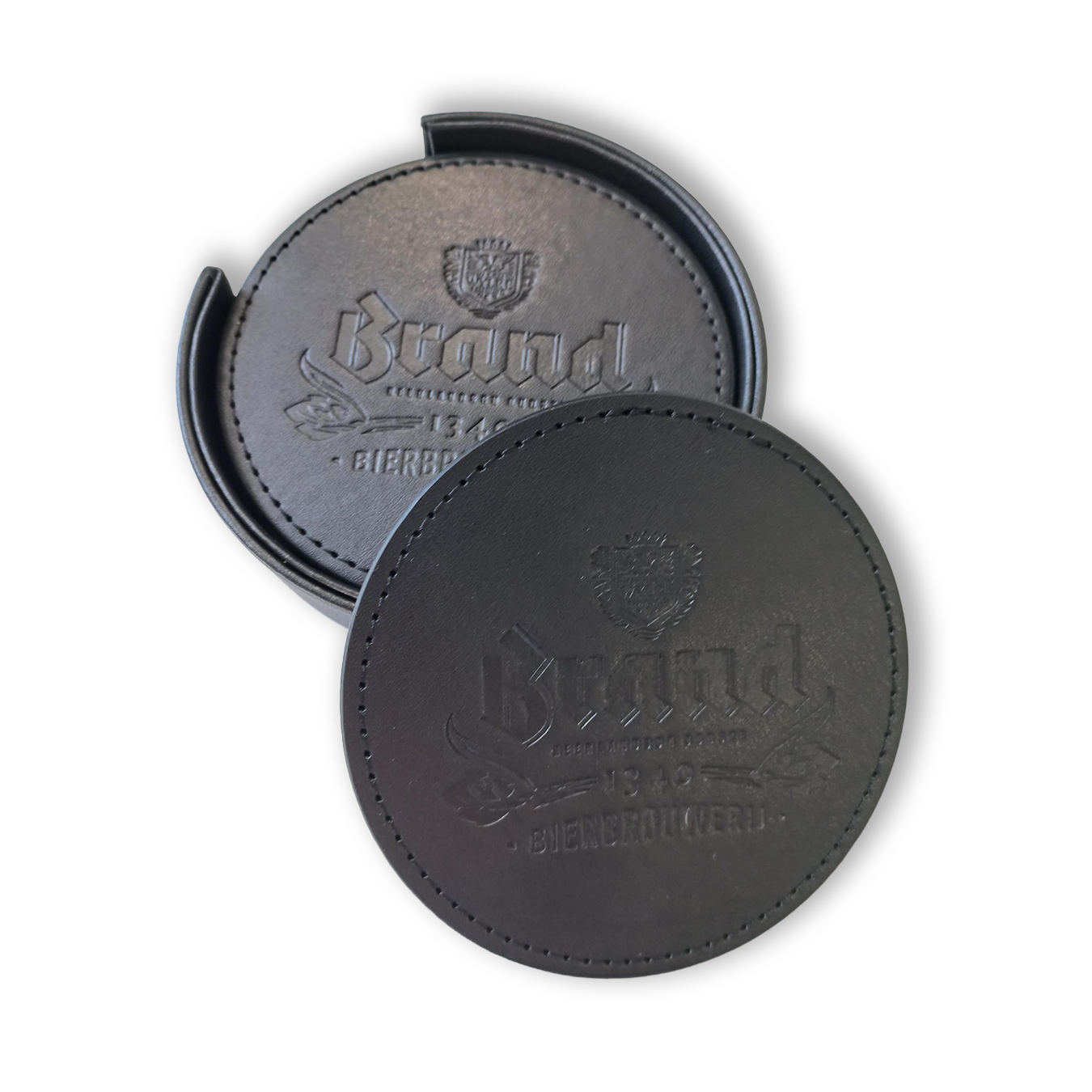 Mooi voor op tafel, deze Brand zwarte onderzetters. 6 stuks in houder.
