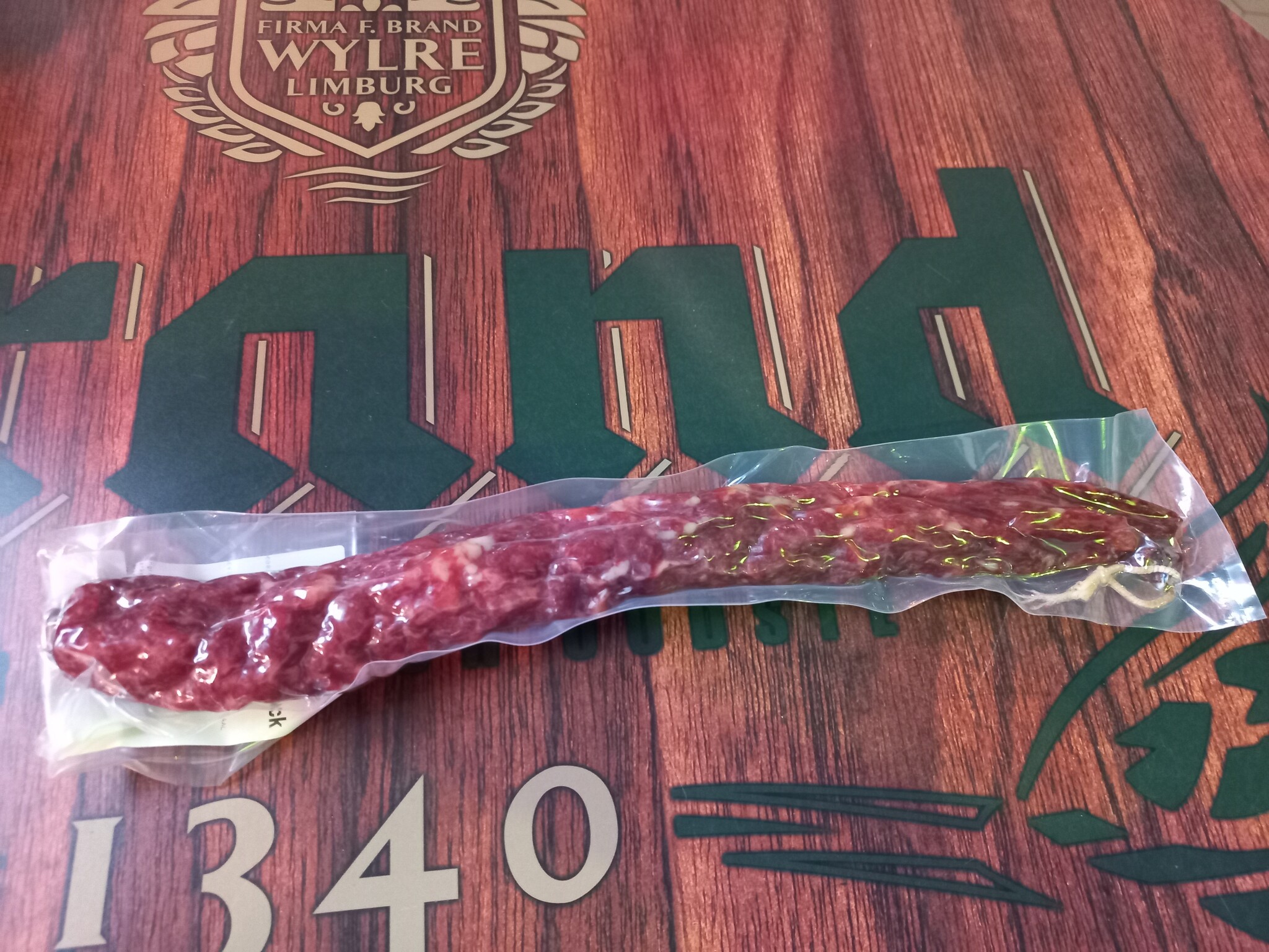 Ingrediënten: Brand Dubbelbock, varkensvlees, Heuvelland wild, varkensvet, zout, lactose, kruiden en specerijen, smaakversterker (E321), antioxidant (E301, E300), voedingszuur (E330), conserveermiddel (E250, E252).
