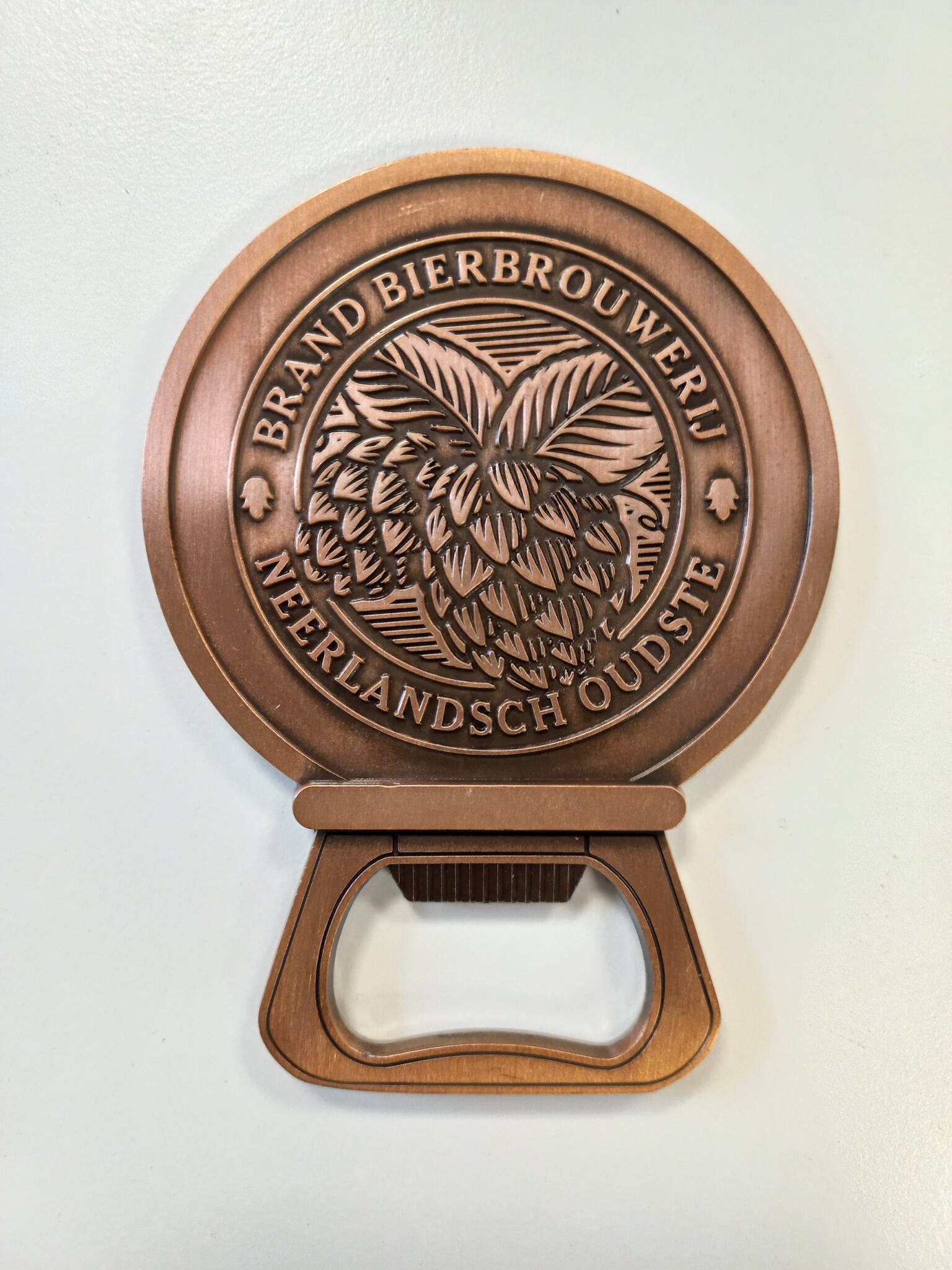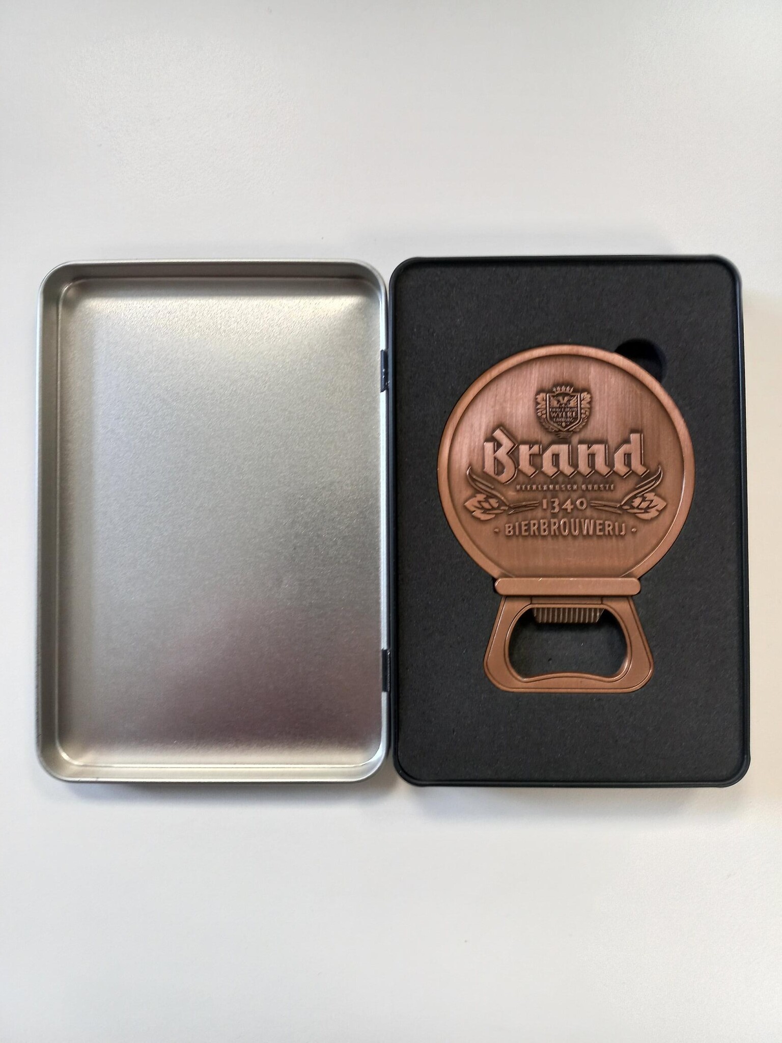 Geef deze opener van koper, die zowel robuust als mooi en strak oogt, een mooie plek bij je Brand collectie of geef hem cadeau. Mooi afgewerkt met een druk op de achterkant.