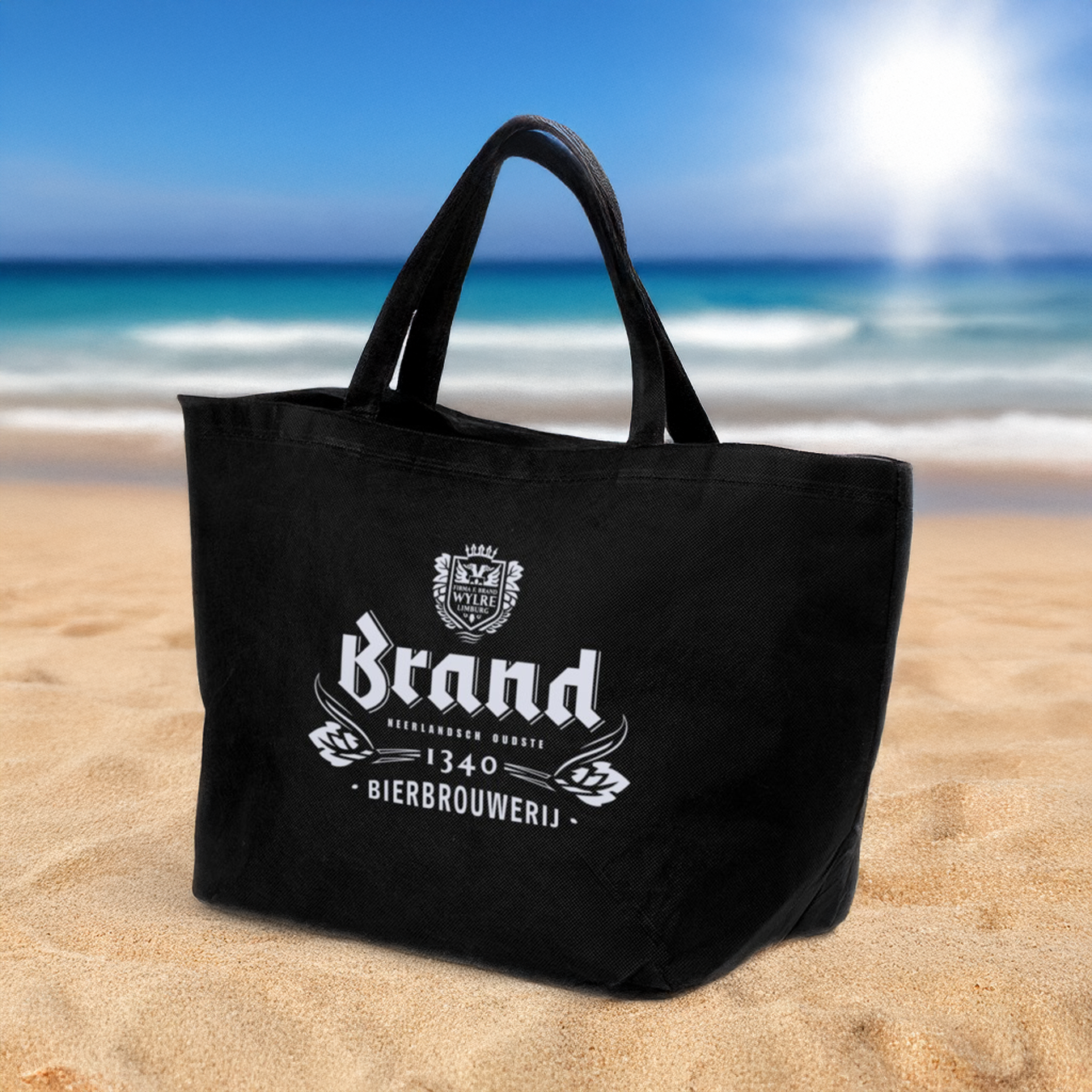 Draagtasje non-woven. Zwart met Brand logo. 100% polypropylene.